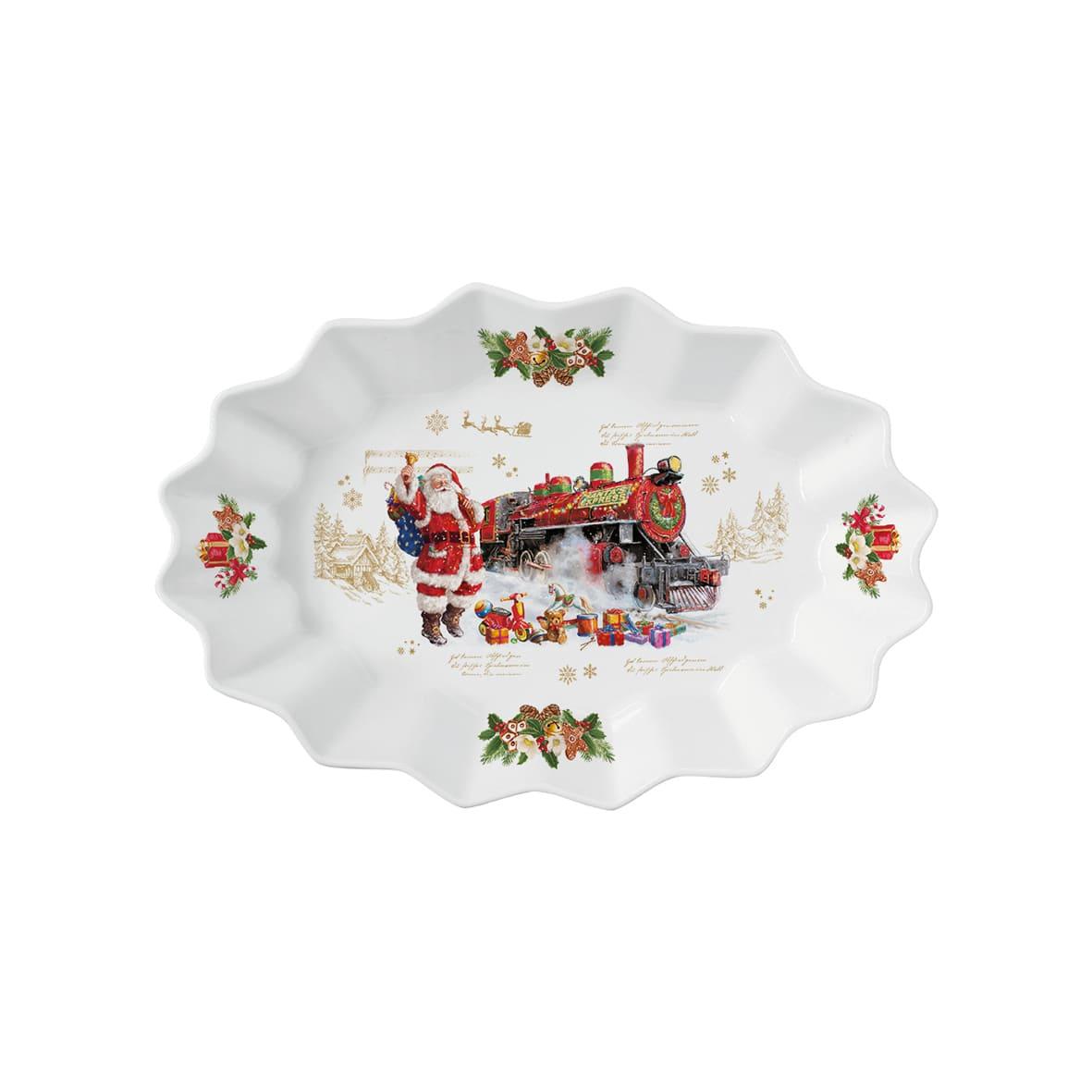 Новорічний порцеляновий овальний піднос Різдвяні спогади 30x20,5x5 см